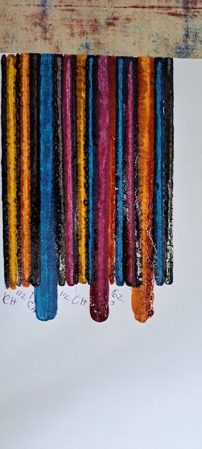 1本1本細い木版を色を変えて押していき